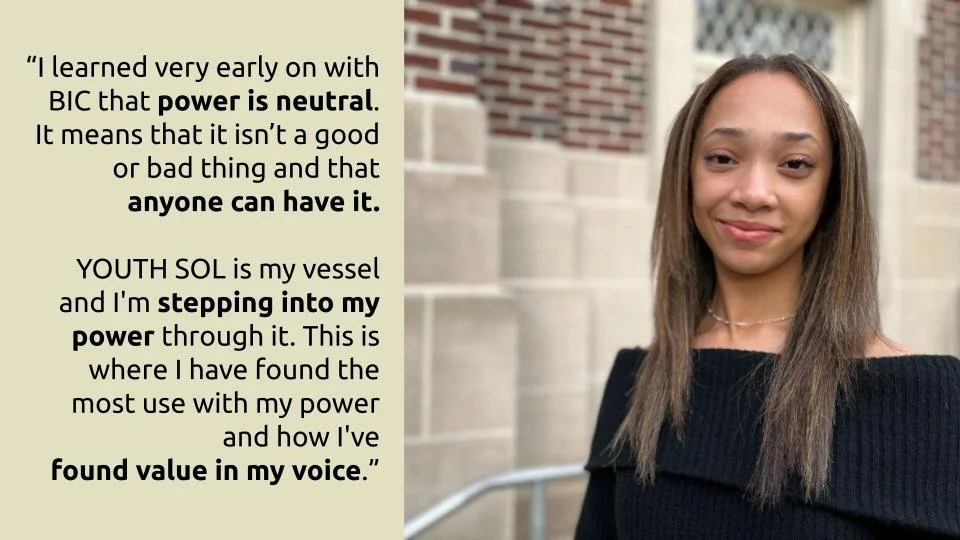 as she serves as a Youth SOL leader at heading into her junior year of high school. She works on the School Policy Team, the Community Safety Team, and the Fundraising Committee. She is consistent and always ready to push herself to the next level of leadership, taking on new roles all the time. She is a “get it done” type of person, who jumps right on a task. The School Policy Team led research around Brockton High School’s antiquated and detrimental attendance policy and wrote a new policy, which was praised by Brockton’s Superintendent of Schools and awaits approval from School Committee. Trinity has spearheaded a major youth-led health and wellness community survey that will impact multiple Youth SOL/BIC teams. She is creative and solution focused and well respected by her peers and adult allies. (October 2023)