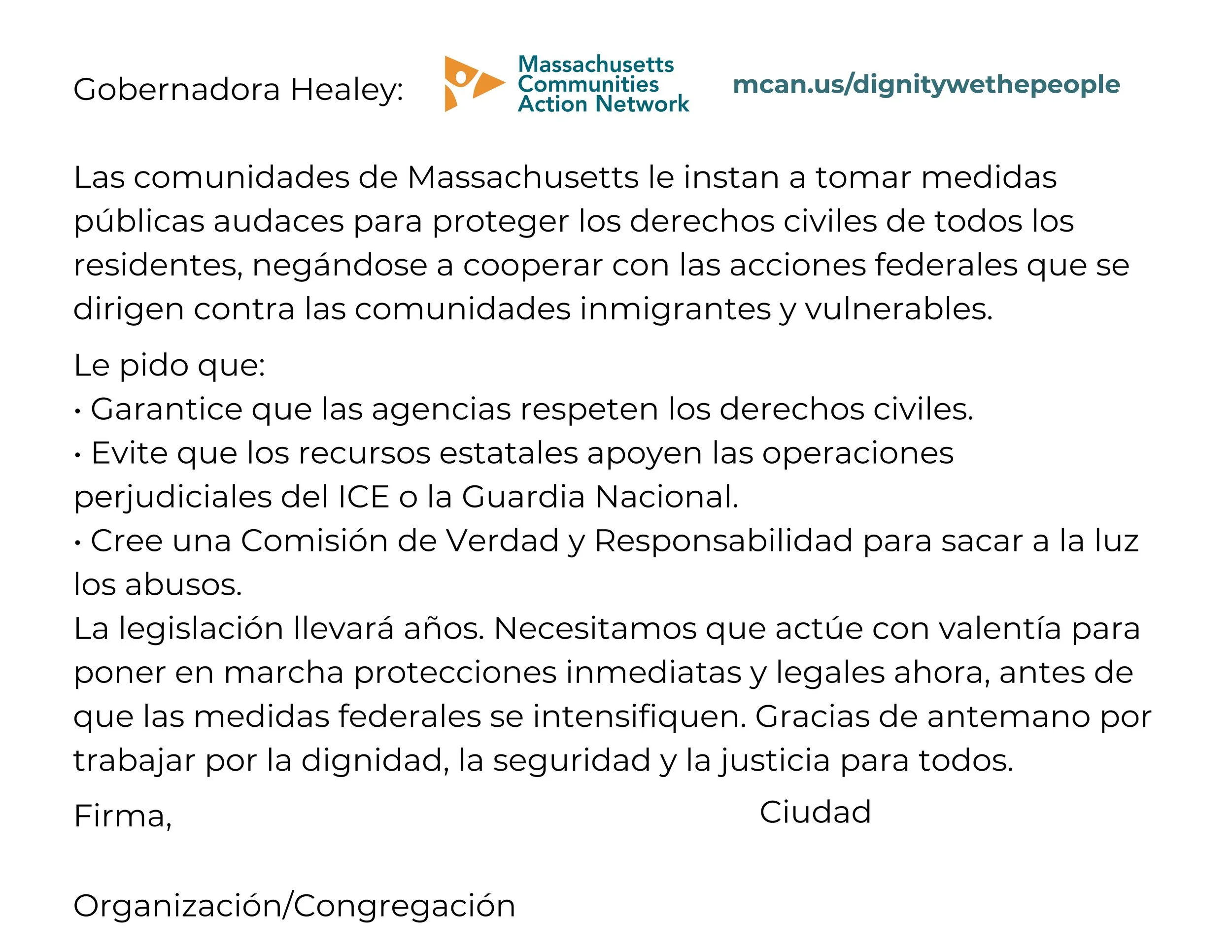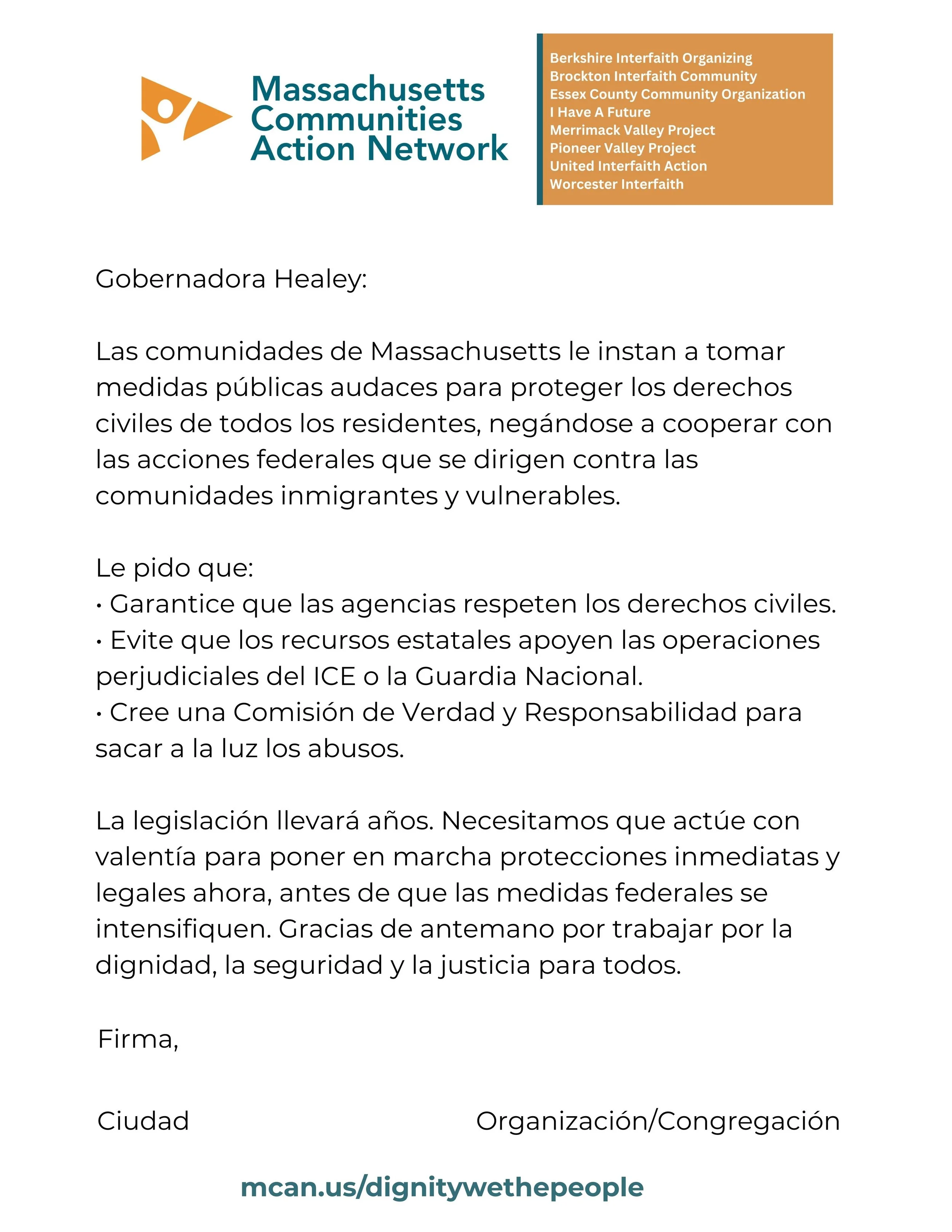 Debajo de la carta hay un formulario en el que puede firmarla electrónicamente.